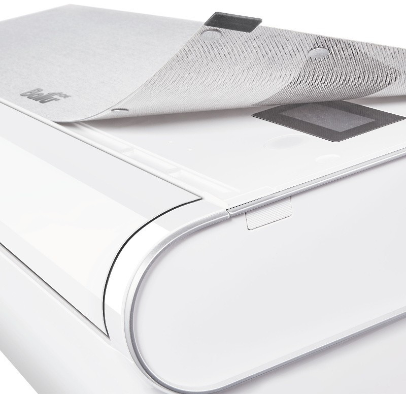 - Для обеспечения максимального комфорта была разработана уникальная форма жалюзи с поворотом на 180°, которая обеспечивает мягкий обдув вдоль потолка или пола.