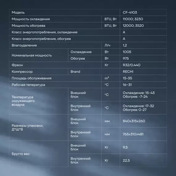 | Уровень шума, внешний блок, макс. | 47 дБ |