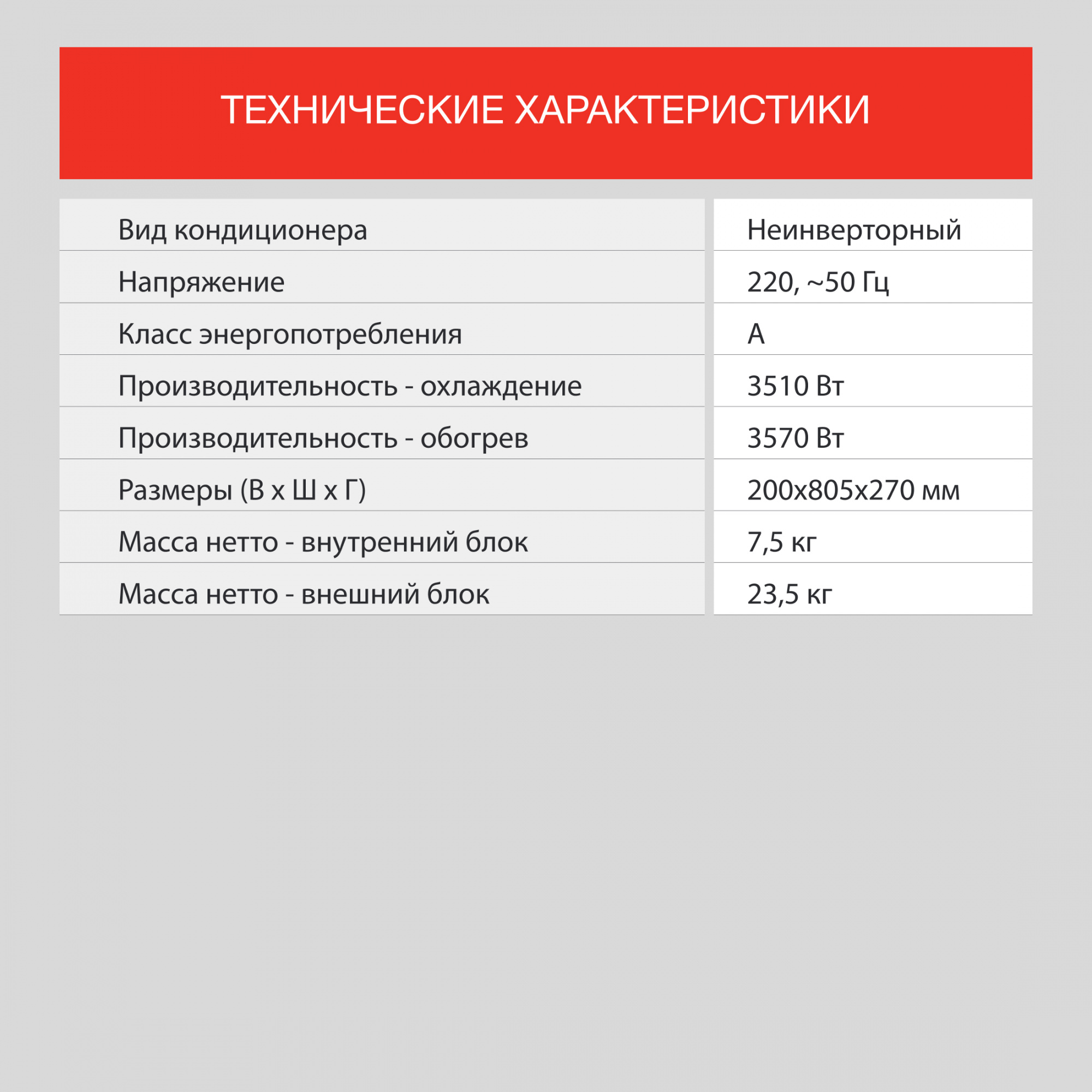 | Уровень шума, внешний блок, мин. | 52 дБ |