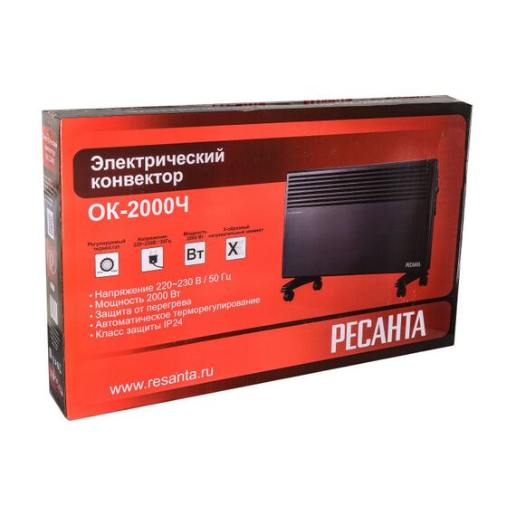 Конвектор Ресанта ОК-2000Ч по праву считается экономичным и эффективным отопительным прибором. Он способен быстро нагреть воздух в большом помещении, не затратив при этом много электрической энергии благодаря эффекту конвекции.