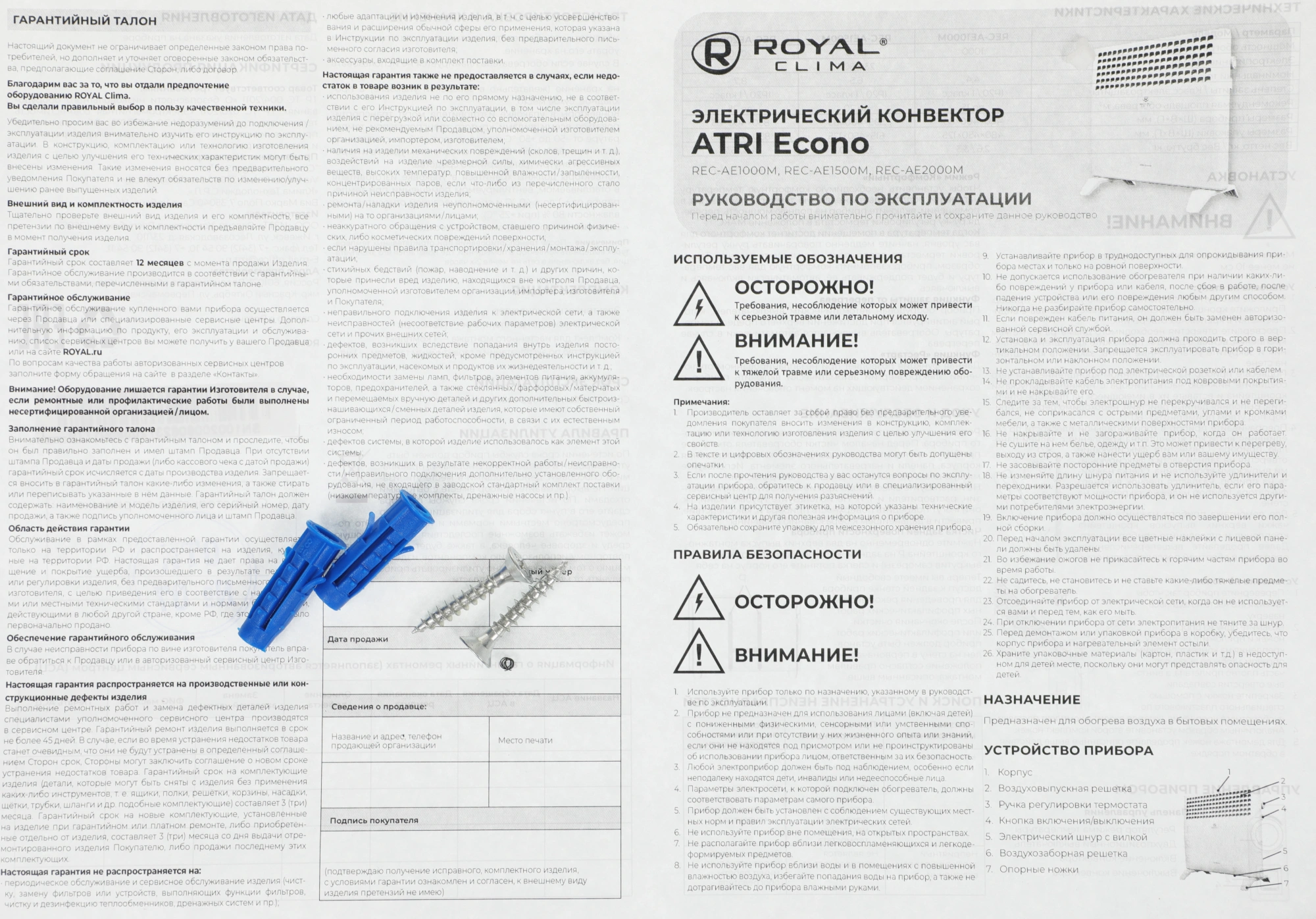 Конвектор Royal Clima REC-AE1500M ATRI Econo 1500Вт белый