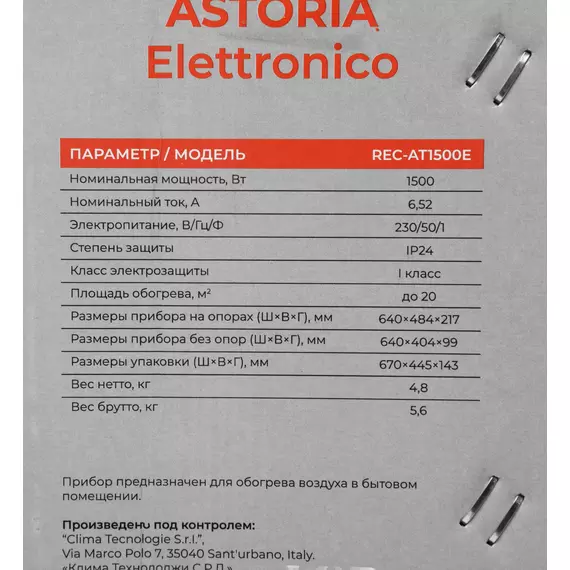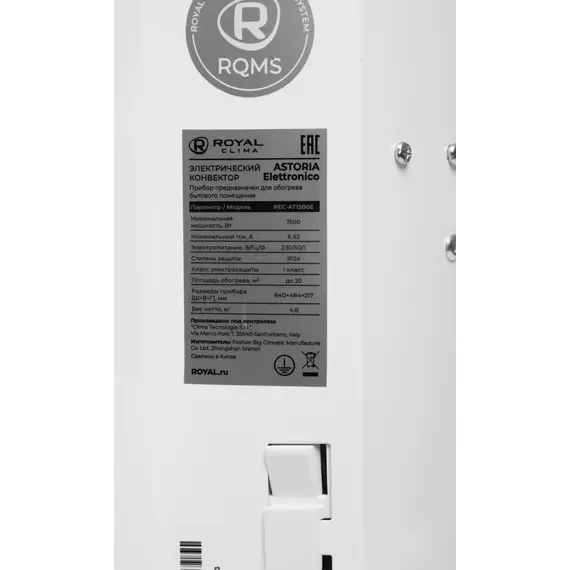 Конвектор Royal Clima REC-AT1500E Astoria Elettronico, 1500Вт белый