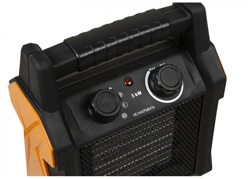 - Датчик опрокидывания отключает тепловентилятор при случайном падении. Регулируемый термостат позволяет устанавливать уровень нагрева внутри режимов