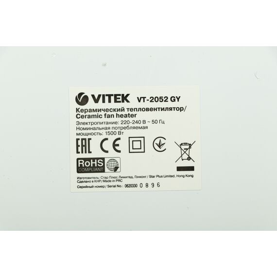 Тепловентилятор Vitek VT-2052 1500Вт белый [2052-VT-01]