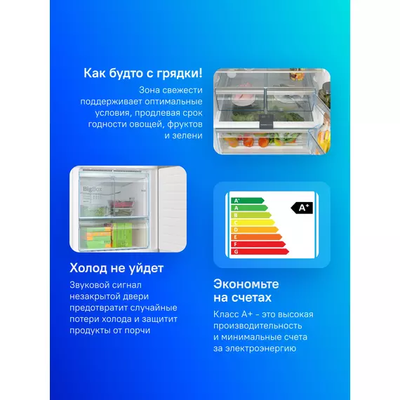 | Функции | защита от детей, режим отпуск, система многопоточного охлаждения, суперзаморозка, суперохлаждение |