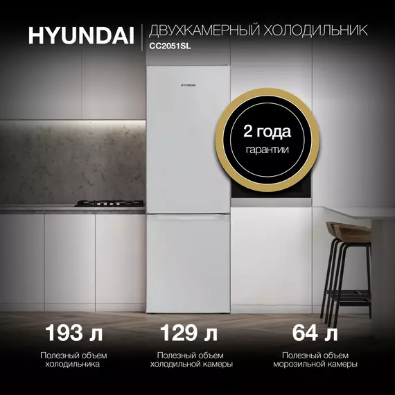 Холодильник Hyundai CC2051SL 2-х камерный, серебристый