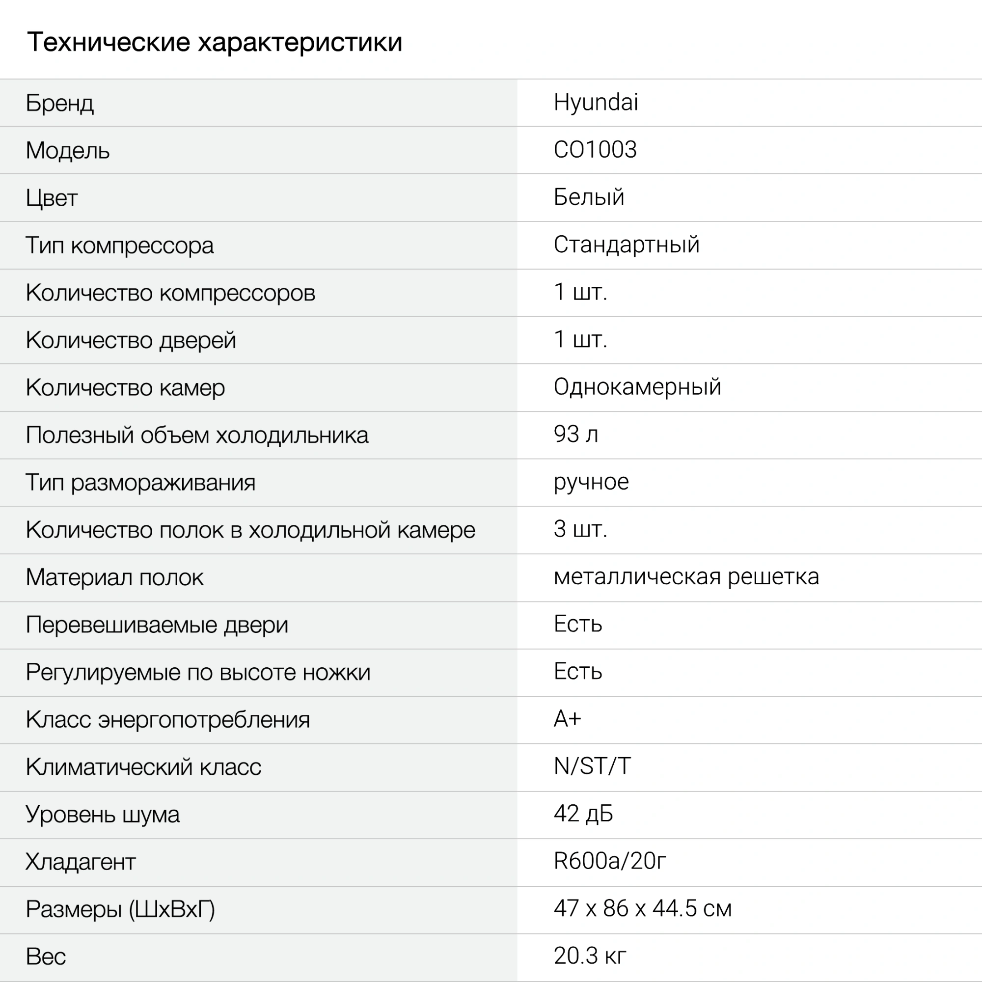 Холодильник Hyundai CO1003 1-нокамерный, белый