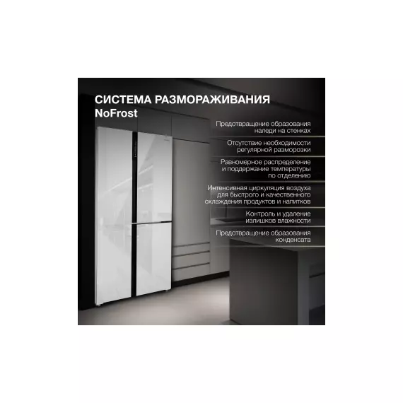 Холодильник Hyundai CS6073FV 3-хкамерн. белое стекло инвертер