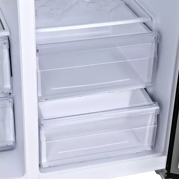 Холодильная камера с объемом 407 литров и морозильная камера с объемом 205 литров, расположенная слева, оснащены системой No Frost, что исключает необходимость вручную размораживать, и способствует более равномерному распределению холода.