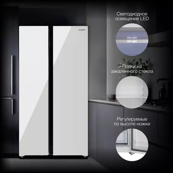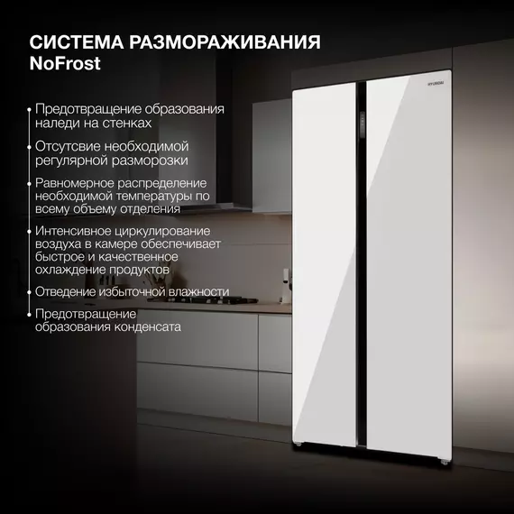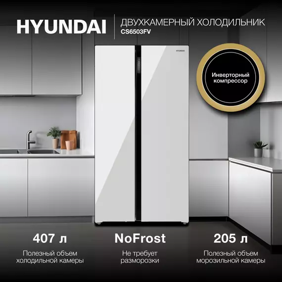 Холодильник Hyundai CS6503FV 2-х камерный, белое стекло, инвертер