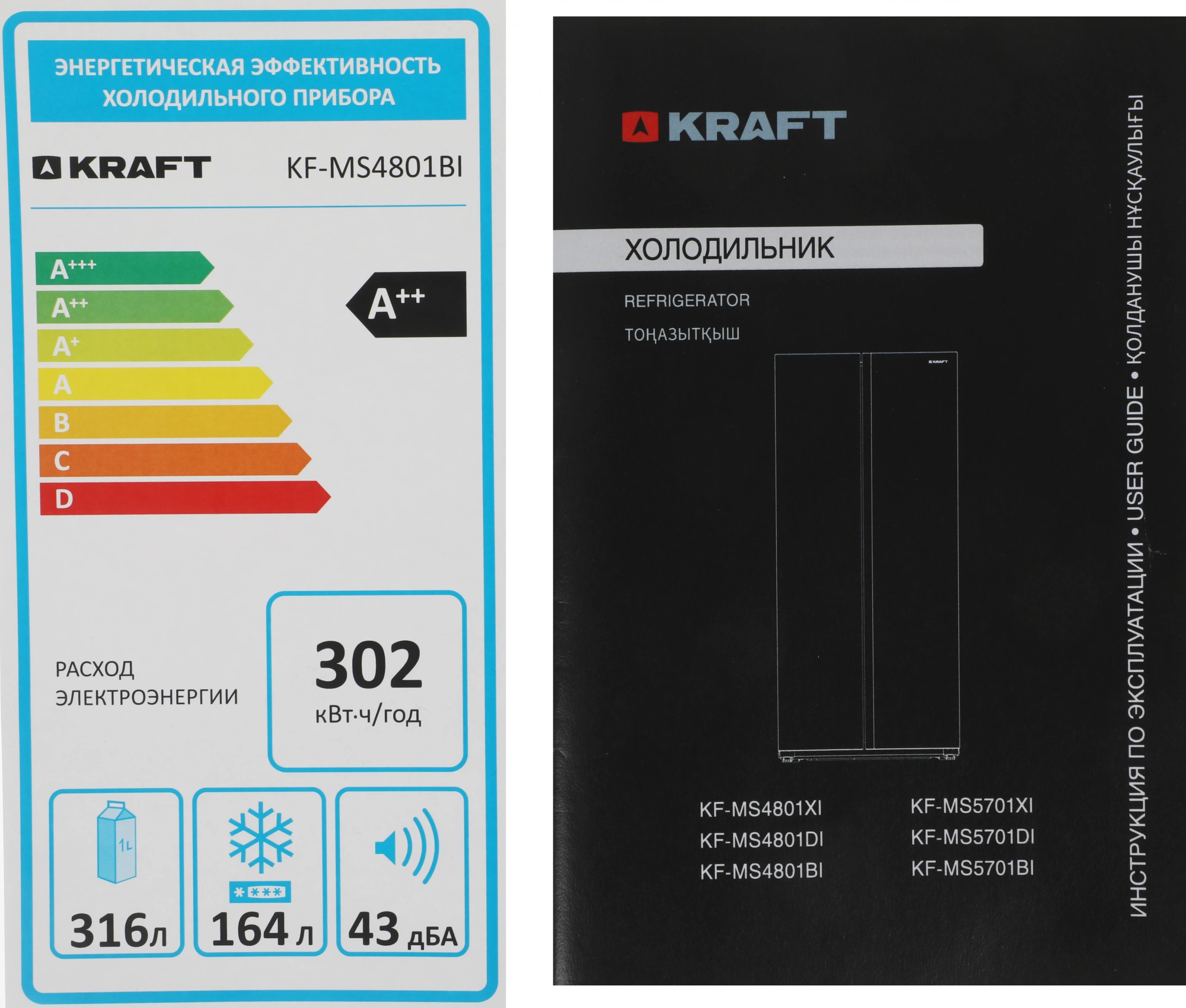 Холодильник Kraft KF-MS4801BI 2-хкамерный, черный, инвертер [Т0000121790]
