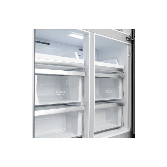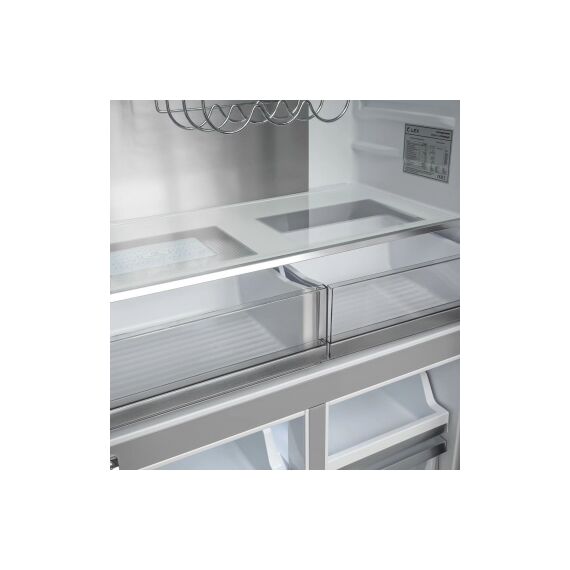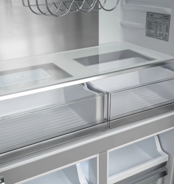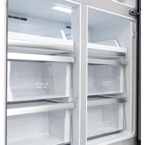 | Особенности | Модель типа CROSS DOOR имеет верхнее холодильное и два независимых нижних морозильных отделения. |