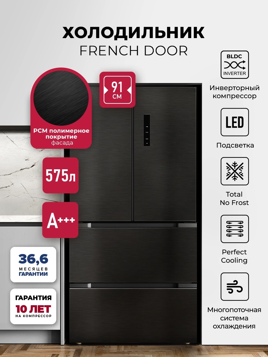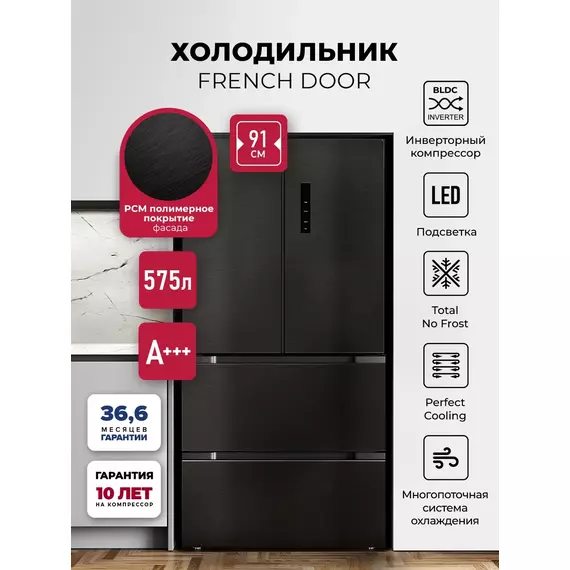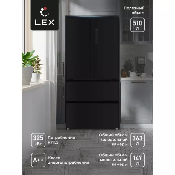 Холодильник LEX LFD575BxID 3-хкамерн. черная сталь инвертер [CHHE000019]