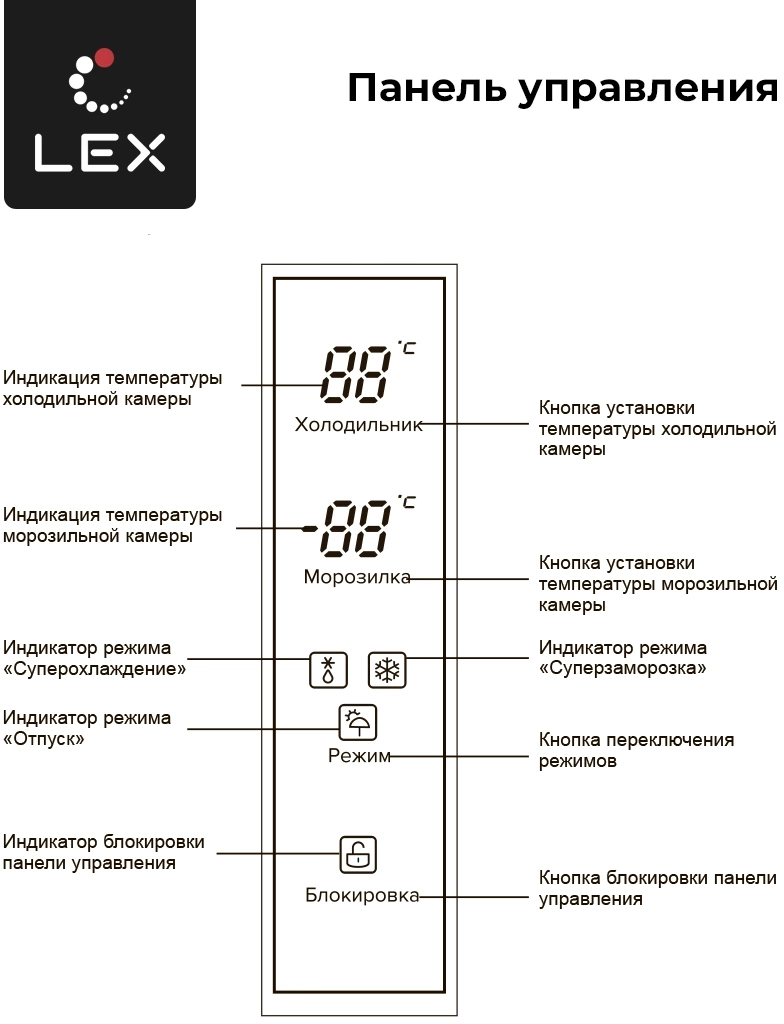 | Функции | защита от детей, режим отпуск, суперзаморозка, суперохлаждение |
