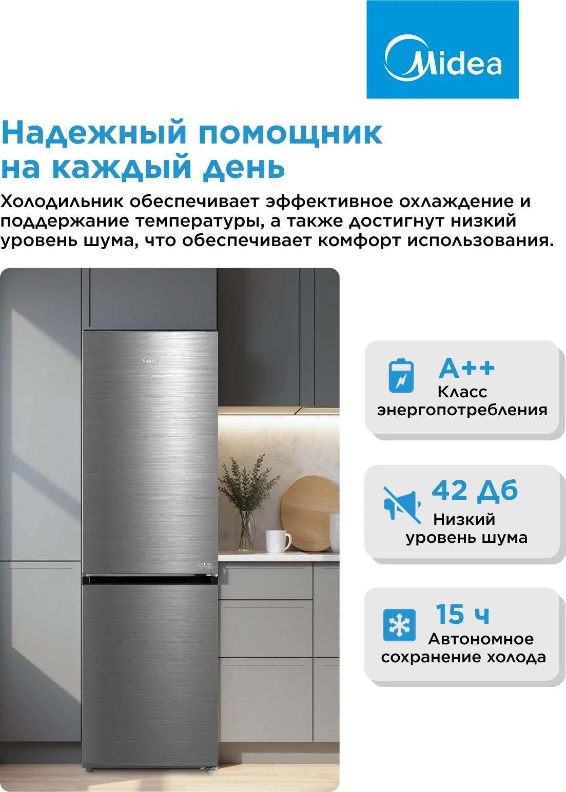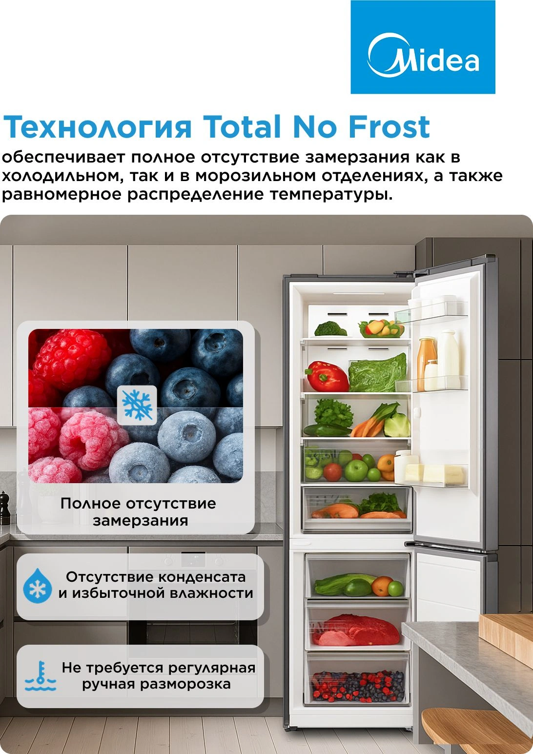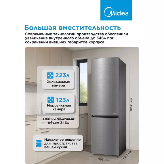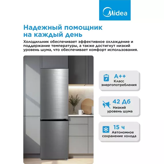 Холодильник Midea MDRB469MGF46I 2-хкамерный, нержавеющая сталь, матовый