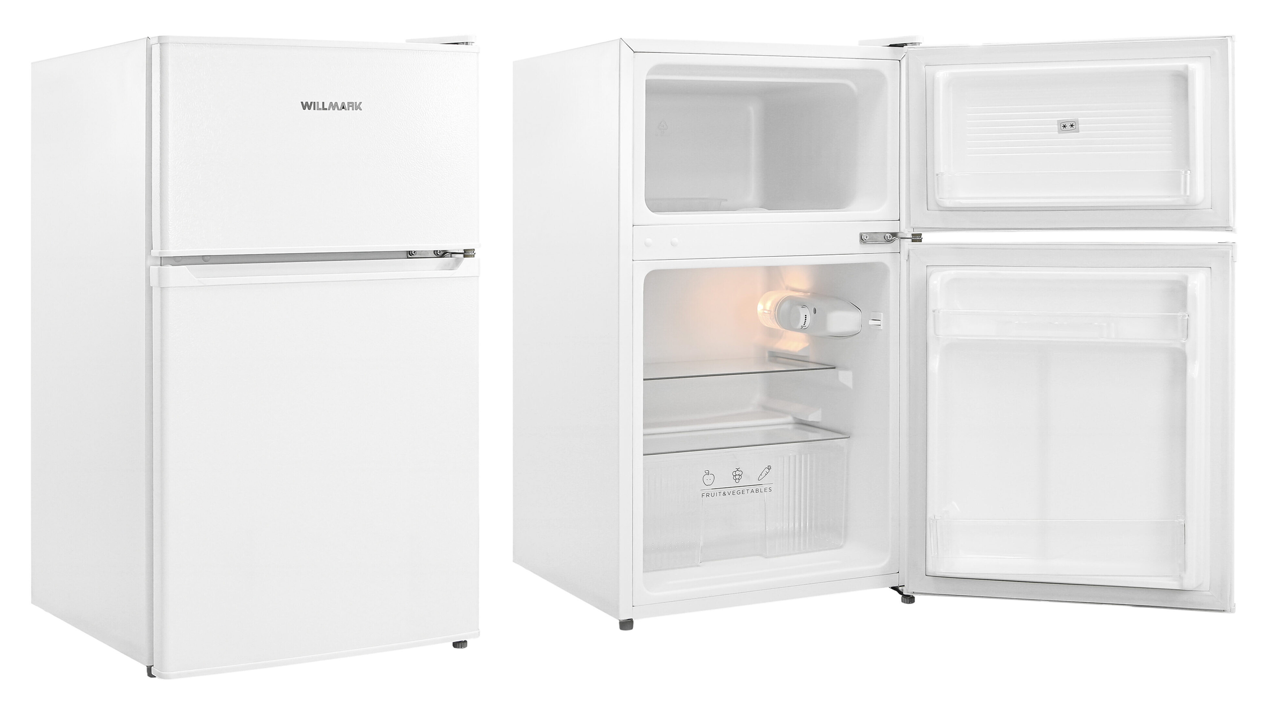 Холодильник двухкамерный WILLMARK RFT-123DD объем 91 л, морозильная камера сверху, цвет белый