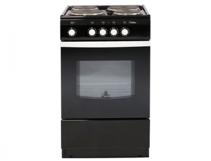 Электрическая плита De Luxe 5004.12э духовка с термостатом, 1 противень, цвет черный, без щитка, без крышки