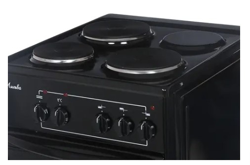 Плита электрическая мощностью 6 кВт с тремя комфорками, оснащенная духовым электрическим шкафом объемом 60 литров.