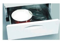 Освещение лампой 40 Вт обеспечивает яркую подсветку внутренней части жарочного шкафа и визуальный контроль за приготовлением блюд без открывания дверцы. Это особенно удобно, когда блюда готовятся одновременно на нескольких уровнях. Выдвижной ящик объемом 20 л удобен для хранения кухонных принадлежностей. ТЭН-гриль обеспечивает получение хрустящей корочки при приготовлении рыбы, тостов, бифштексов, сосисок.