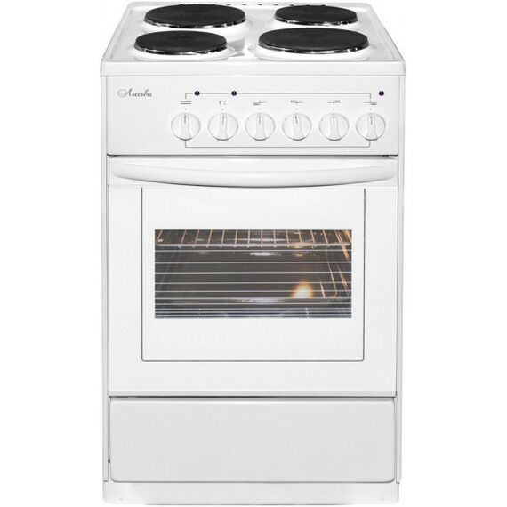 - Элементы комфортности: подсветка духовки, дверца съёмная с двойным стеклом, выдвижной ящик для хранения кухонных принадлежностей, ТЭН-гриль