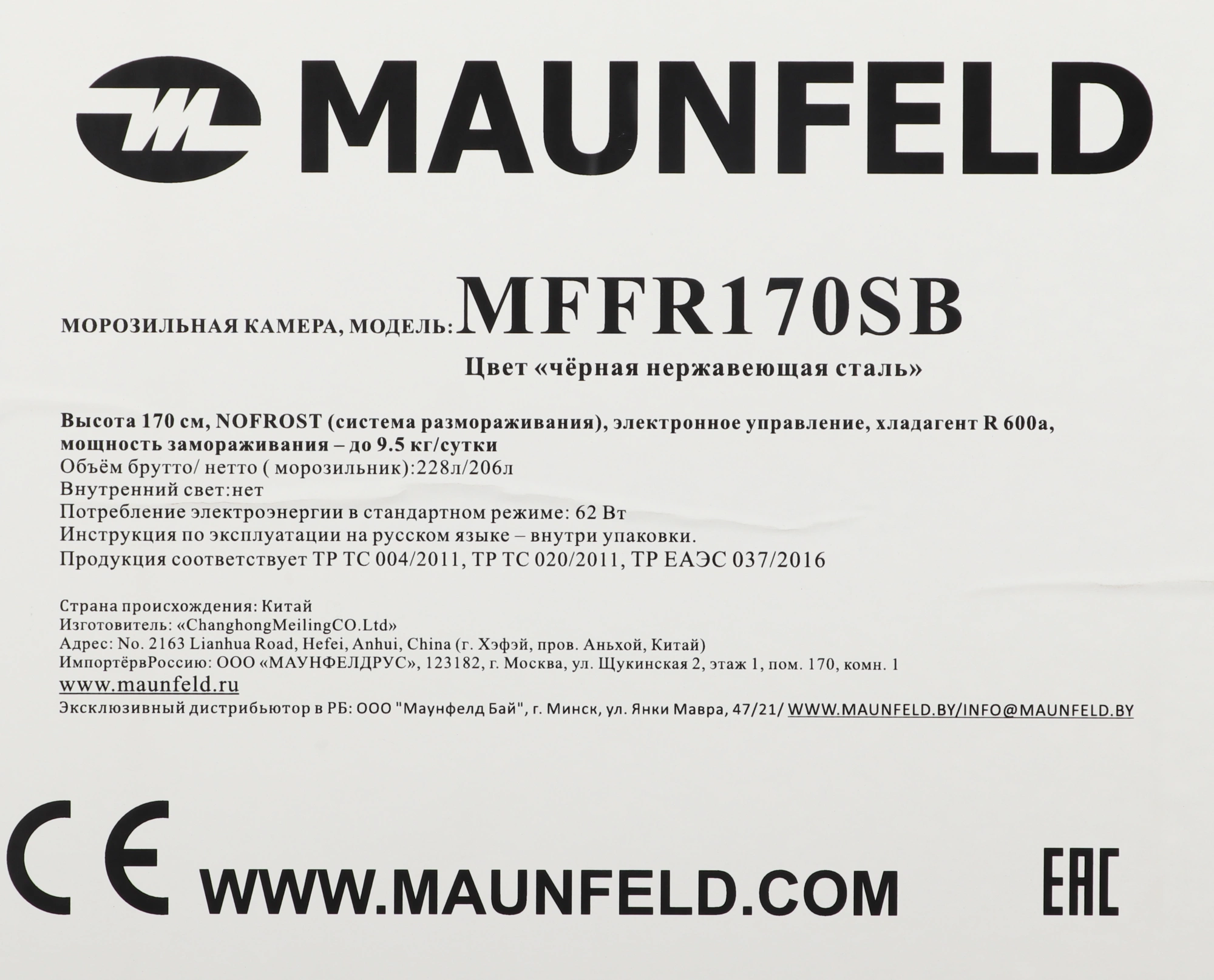 Описание MAUNFELD MFFR170SB [КА-00012721]