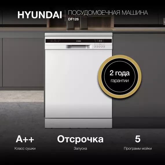 Посудомоечная машина Hyundai DF126 белый (полноразмерная)