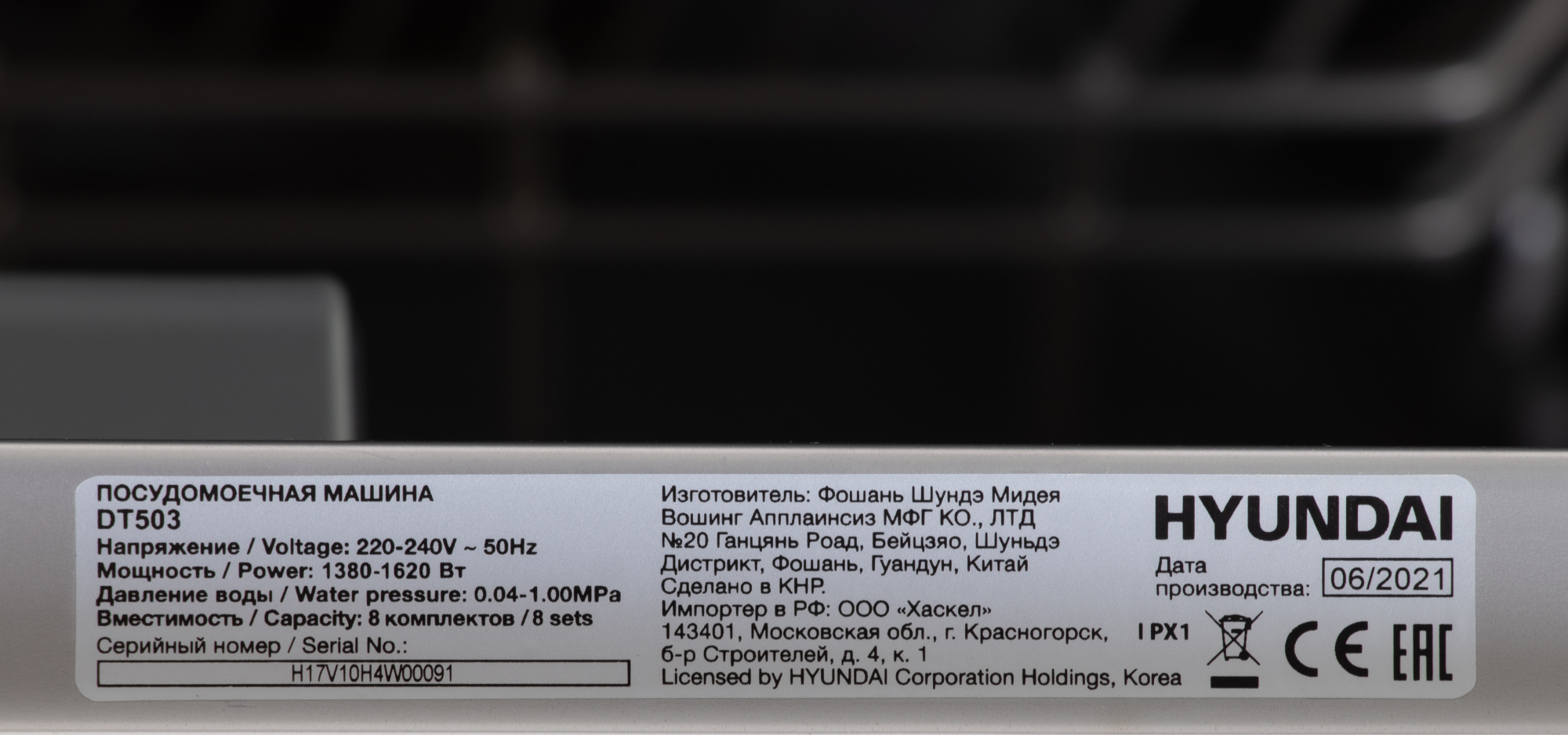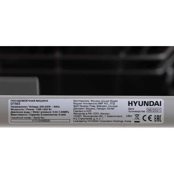 Посудомоечная машина Hyundai DT503 белый, компактная