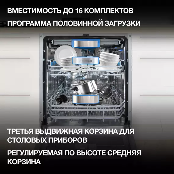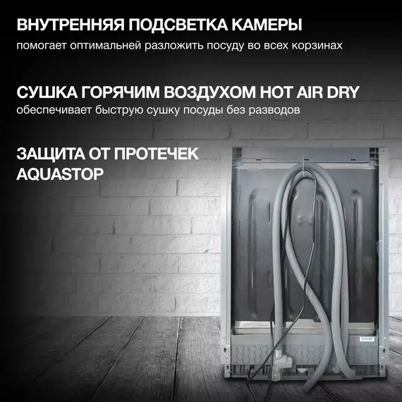 | Внутренняя конструкция | корзина для столовых приборов, освещение, регулируемая по высоте корзина для посуды |