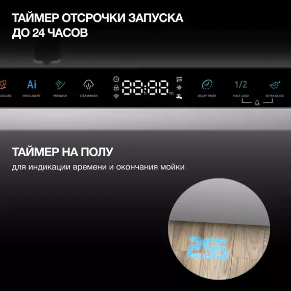 | Особенности | Таймер на полу;Дополнительные функции: Экстра быстро, Дополнительная сушка, Экстра гигиена, Ночной режим, Хранение до 168 часов, Очистка камеры |