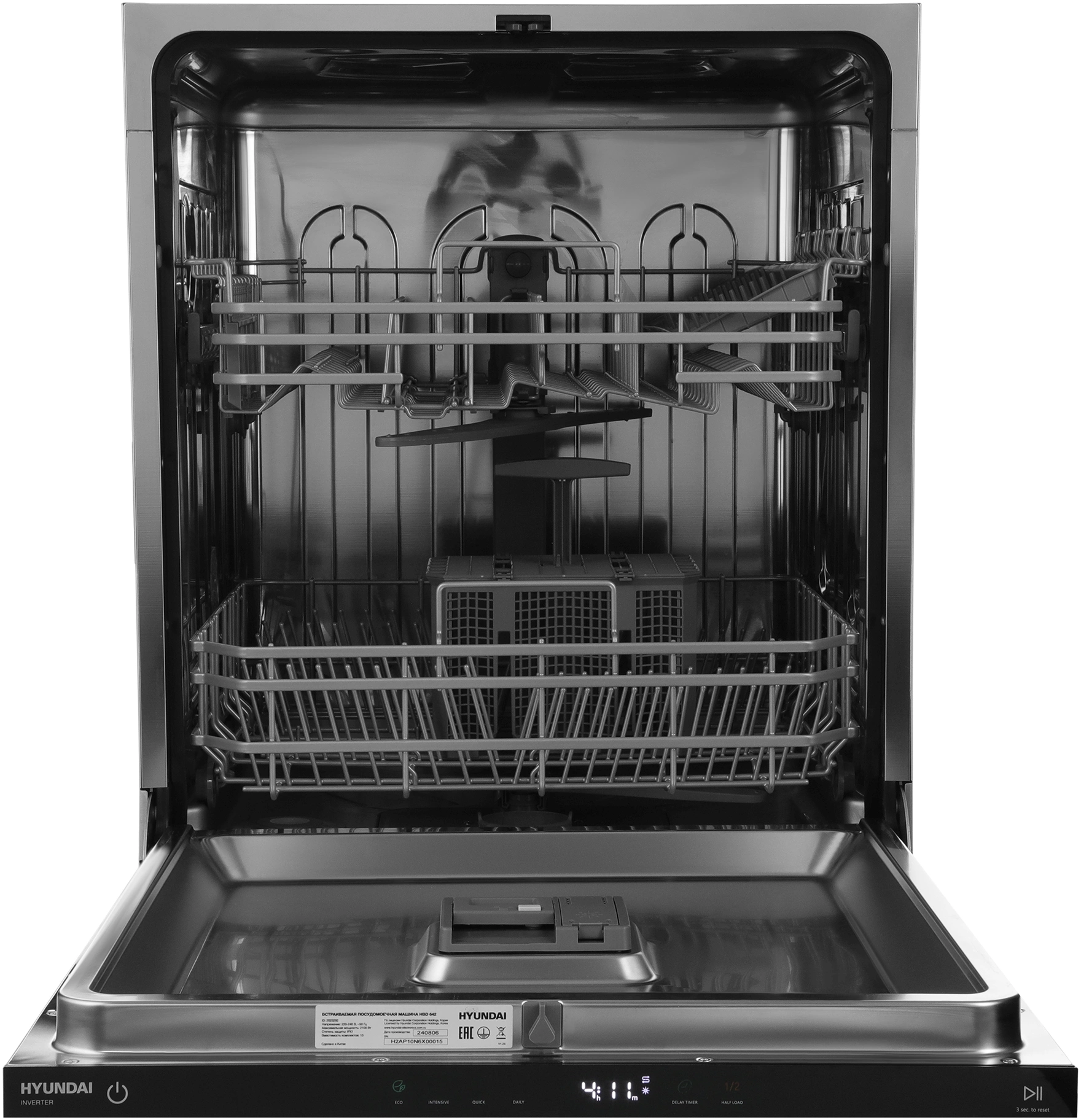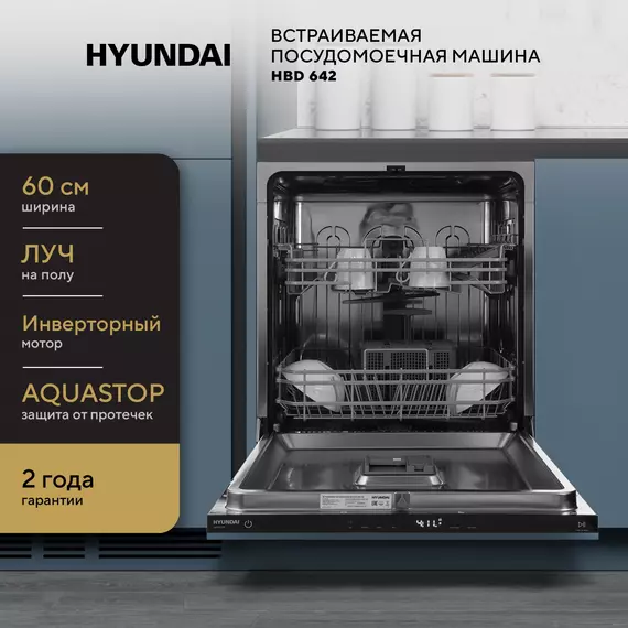 Посудомоечная машина Hyundai HBD 642 встраив. 2100Вт полноразмерная нержавеющая сталь инвертер