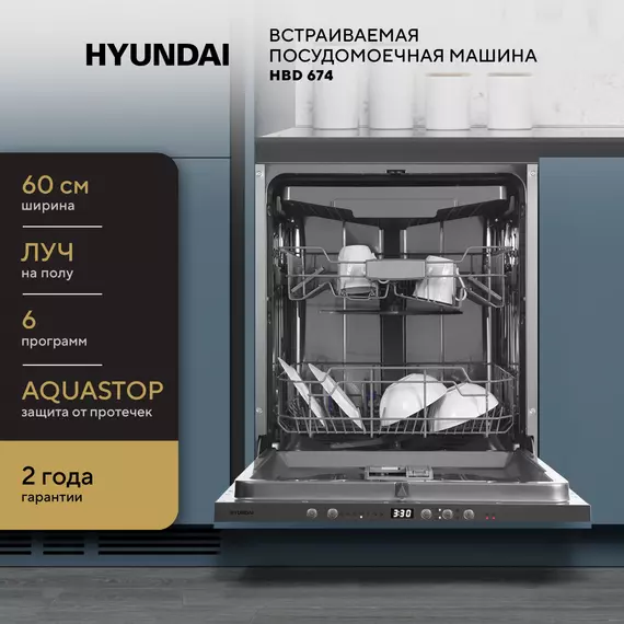 Посудомоечная машина Hyundai HBD 674 встраив. 2100Вт полноразмерная серебристый