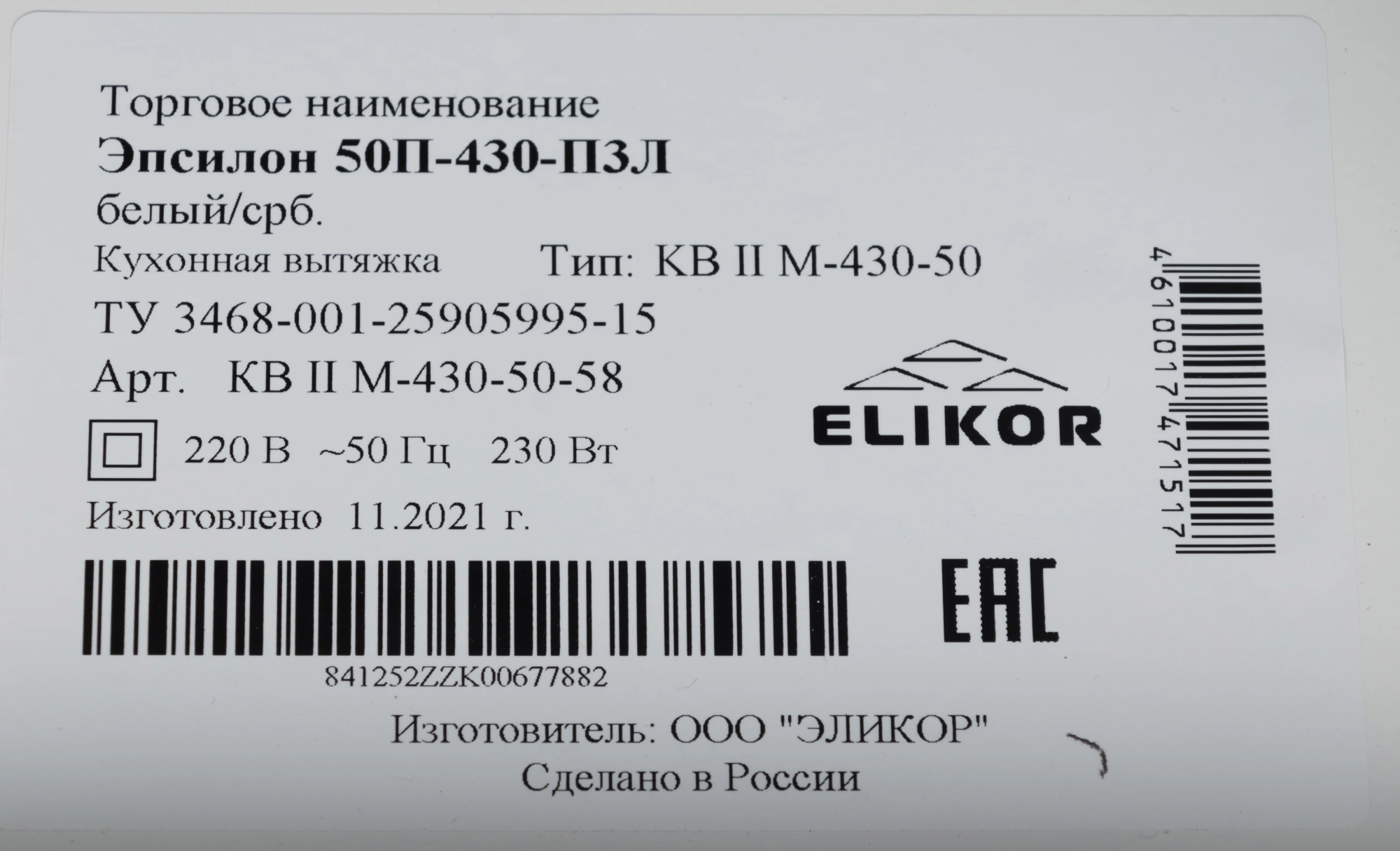 Описание ELIKOR Эпсилон 50П-430-П3Л [841252]