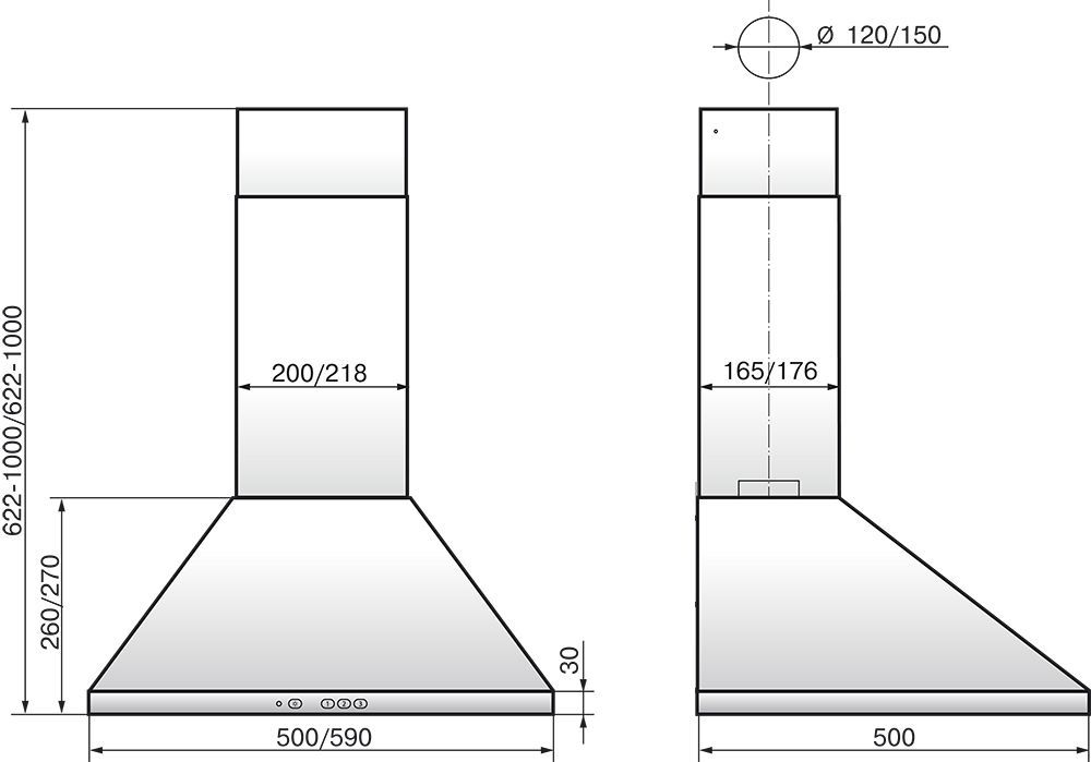 | Диаметр штуцера для отвода воздуха | 120/150 мм |