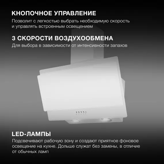 Вытяжка каминная Hyundai HGH 6830 WG белый управление: кнопочное (1 мотор)