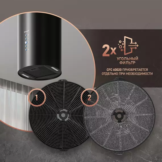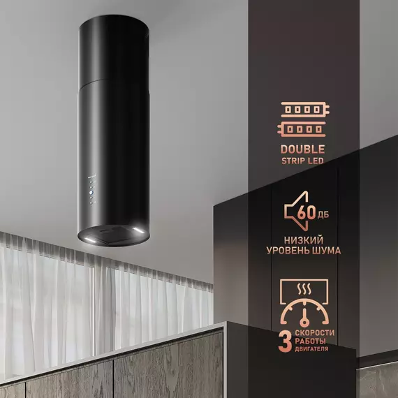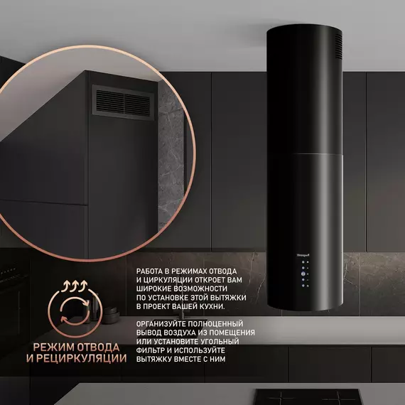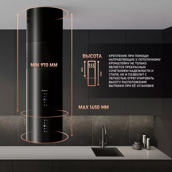 Вытяжка каминная Weissgauff Tubus 1406 Island черный управление: кнопочное (1 мотор) [430315]