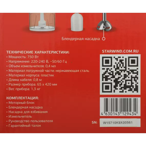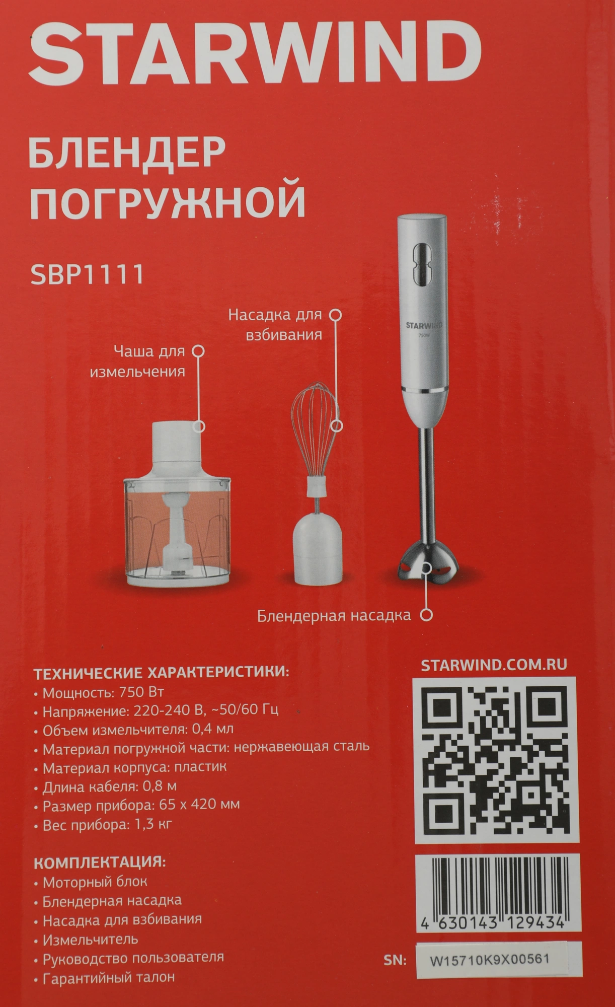 Блендер погружной STARWIND SBP1111 750Вт белый