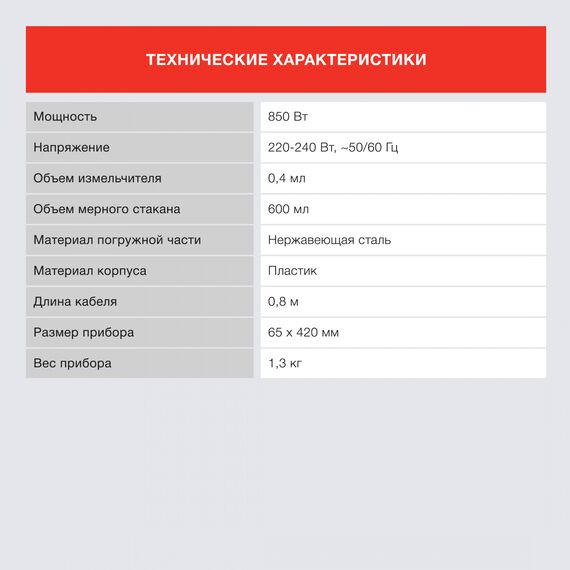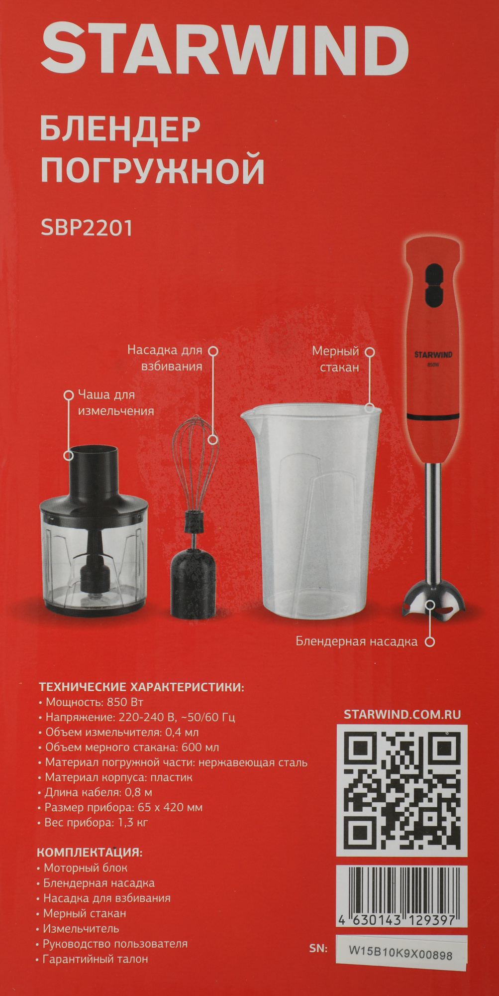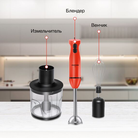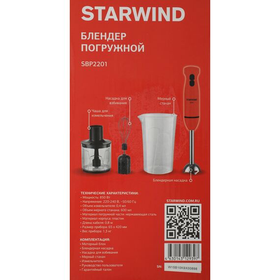 Блендер STARWIND SBP2201 погружной 850Вт красный/черный