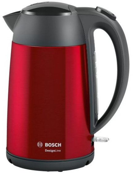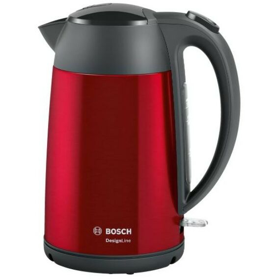 Чайник BOSCH TWK3P424 DesignLine, нержавеющая сталь, цвет красный, 2400 Вт, 1.7л, скрытый нагревательный элемент, фильтр от накипи