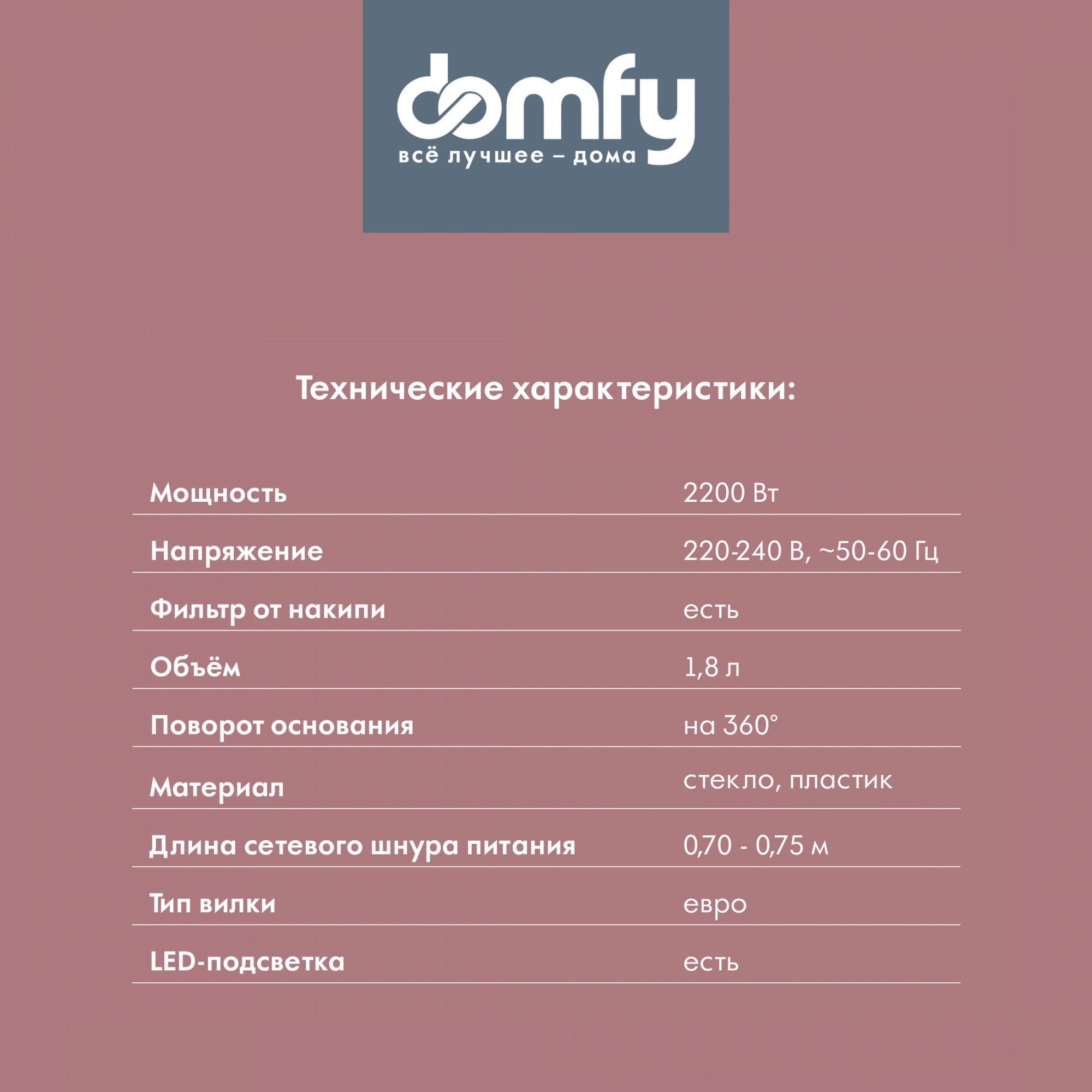 LED-подсветка. Светодиодная подсветка автоматически включается во время нагрева, придавая чайнику особую привлекательность.