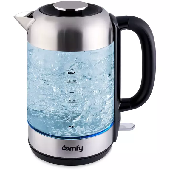 Чайник Domfy DSM-EK401 1.8л. 2200Вт черный/прозрачный корпус: стекло/пластик