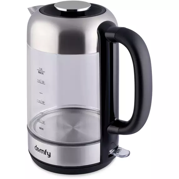 Электрический чайник DOMFY DSM-EK401 объемом 1,8 л успешно совмещает в себе презентабельность и практичность. Корпус электрочайника изготовлен преимущественно из стекла и нержавеющей стали, что обеспечивает сочетание повышенной прочности и продолжительного ресурса. Характерной особенностью модели является полностью съемная крышка, облегчающая заливку воды.