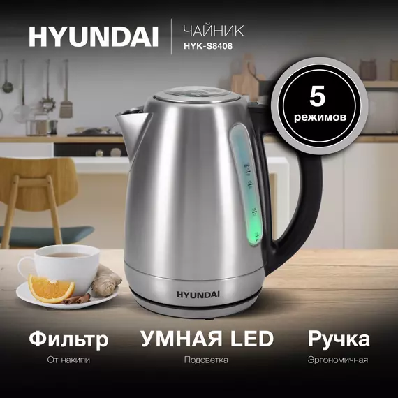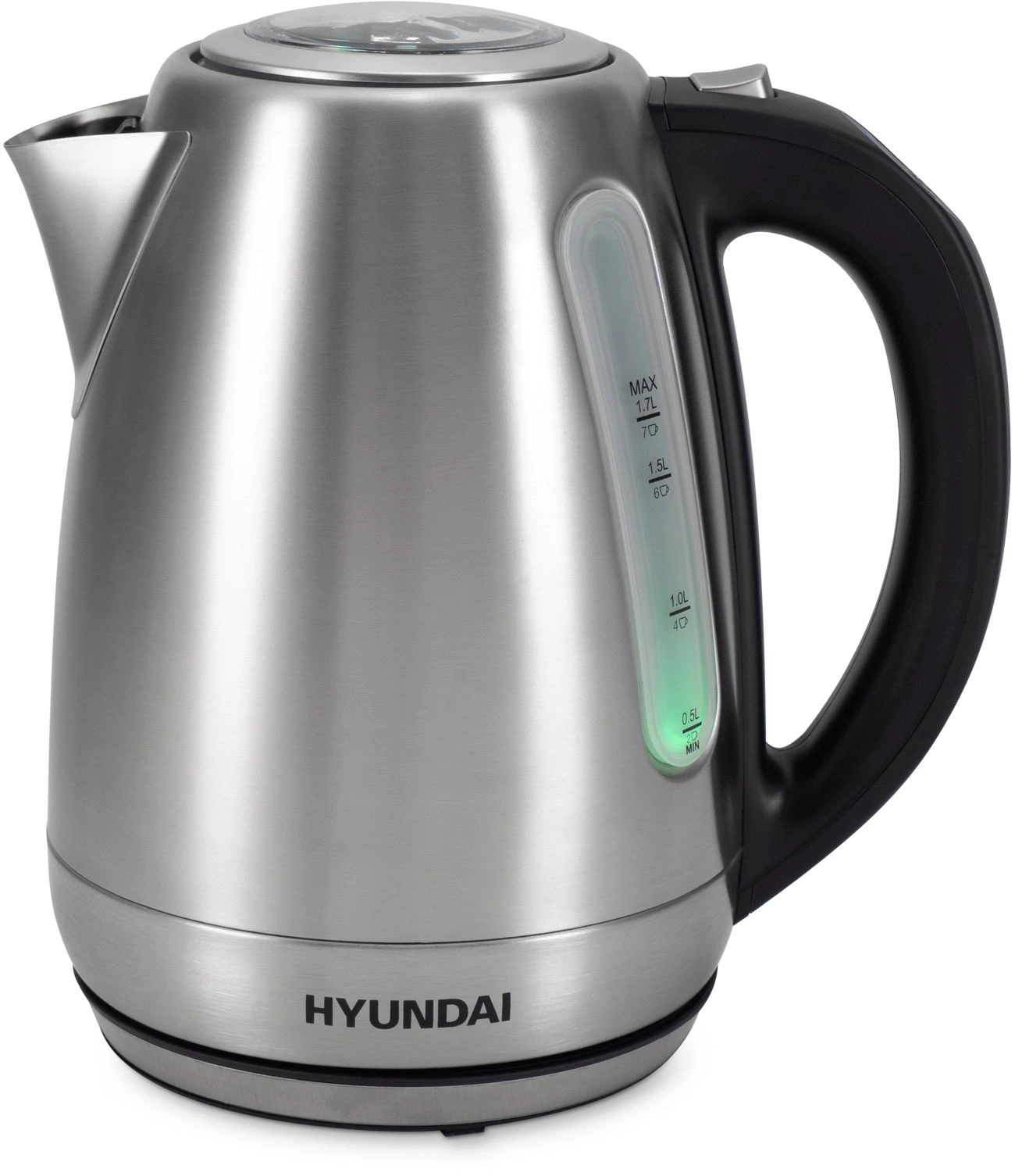 Чайник Hyundai электрический 1.7л. 2200Вт серебристый матовый/черный корпус: металл