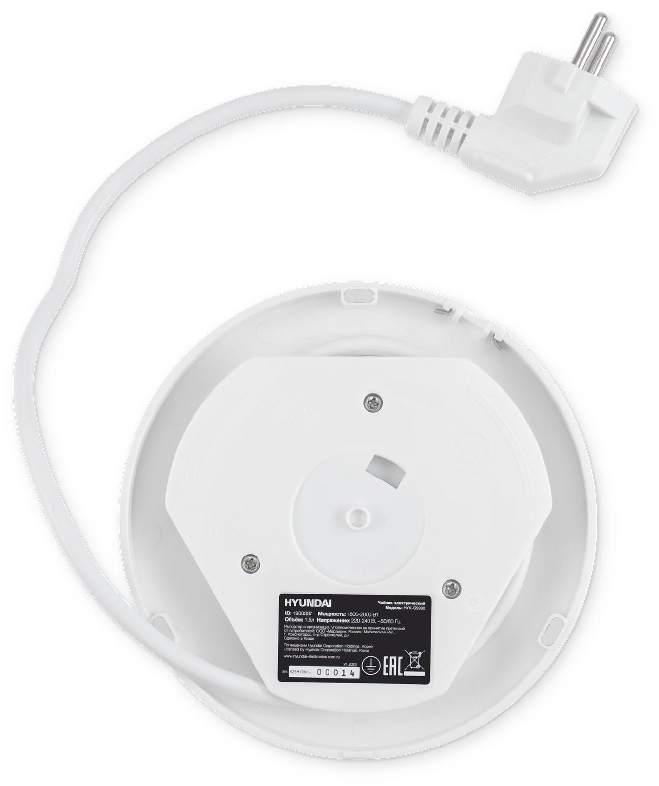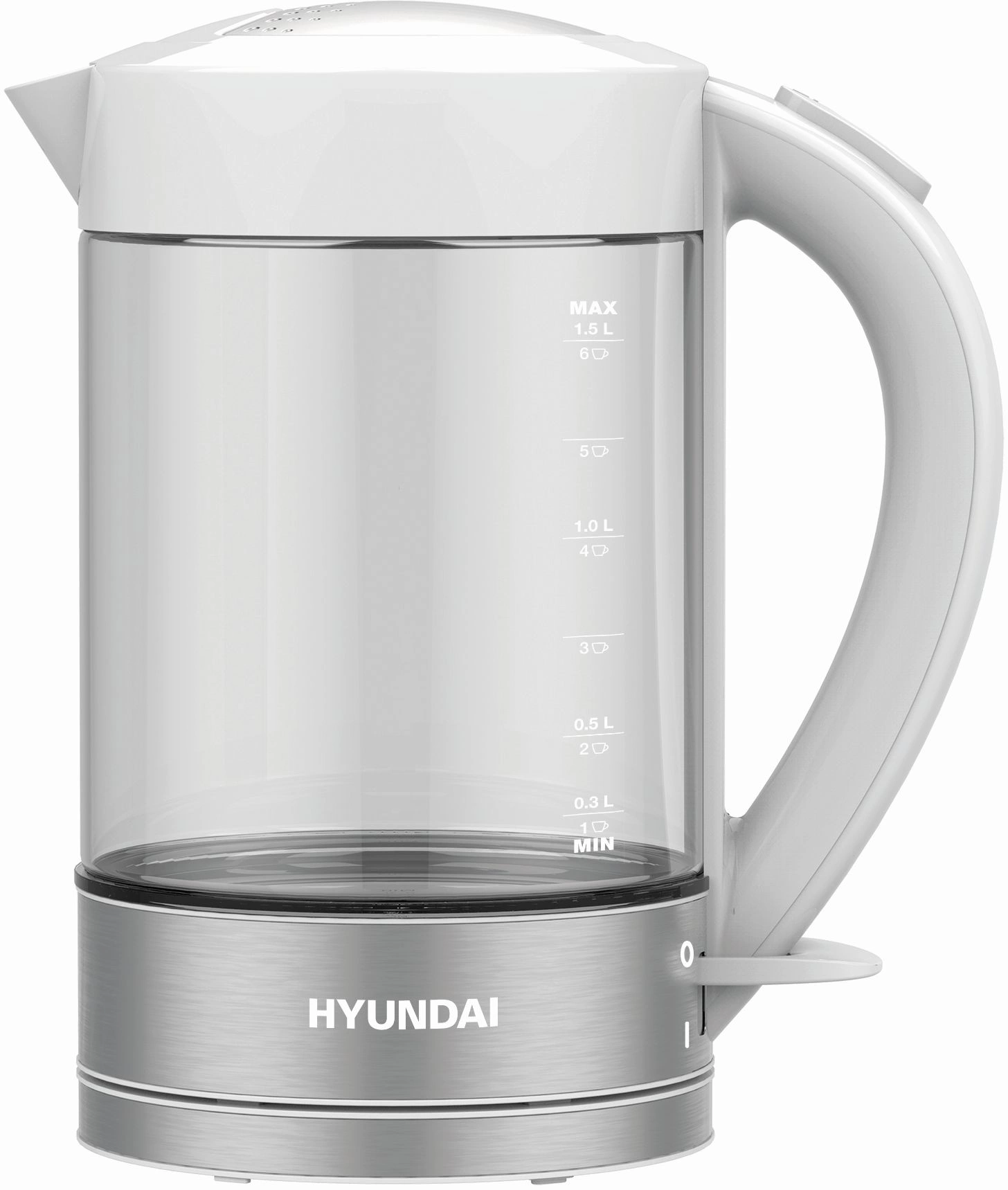 Чайник Hyundai HYK-G9990 1.5л. 2000Вт белый/серебристый корпус: стекло