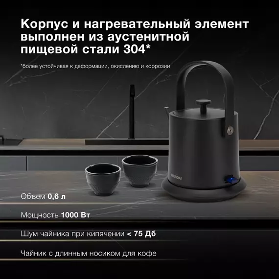 | Обратите внимание | Чайник выполнен из аустенитной стали 304, более устойчива к деформации, появлению ржавчины и коррозии. |