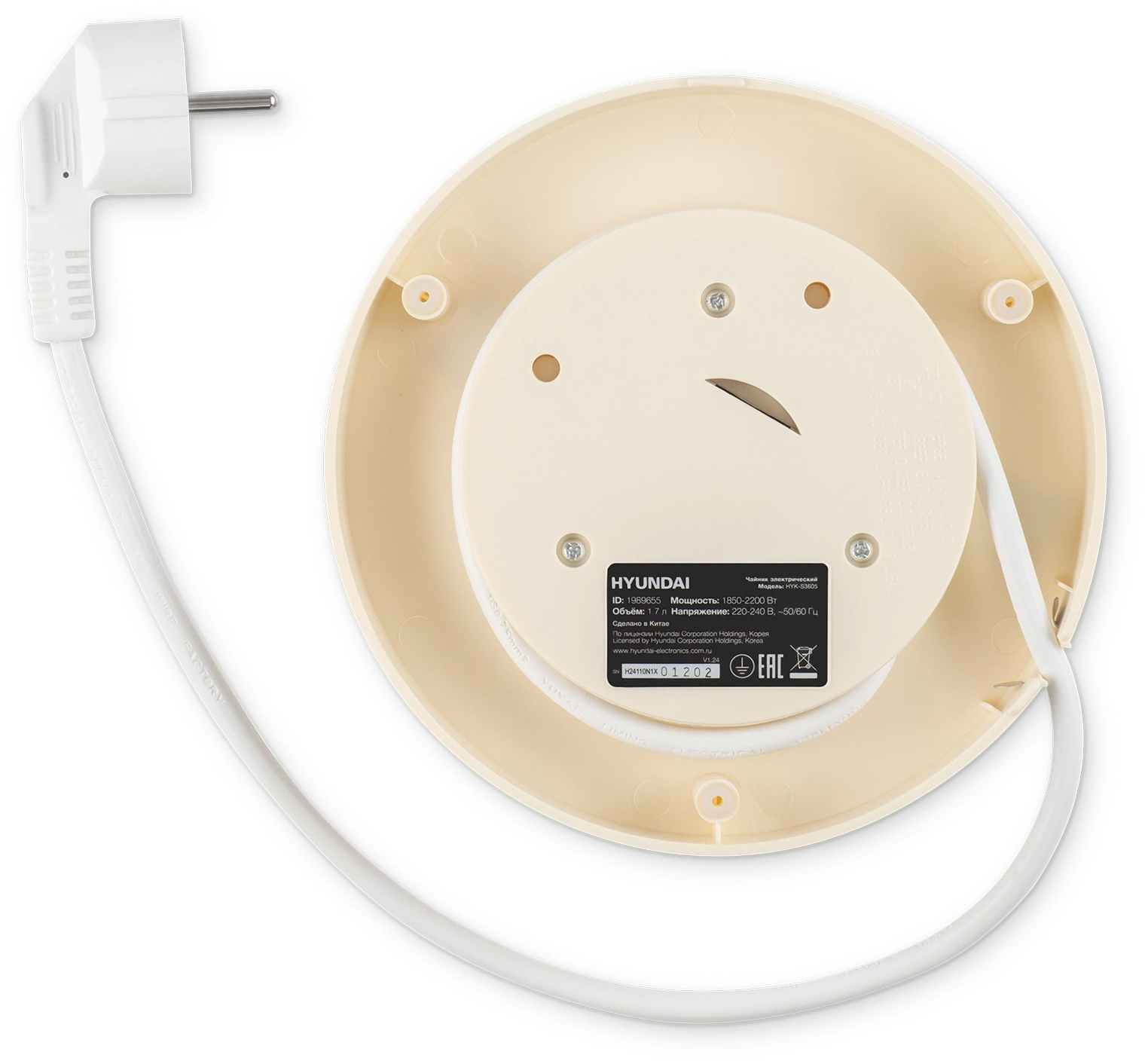 Чайник Hyundai HYK-S3605 1.7л. 2200Вт кремовый корпус: металл