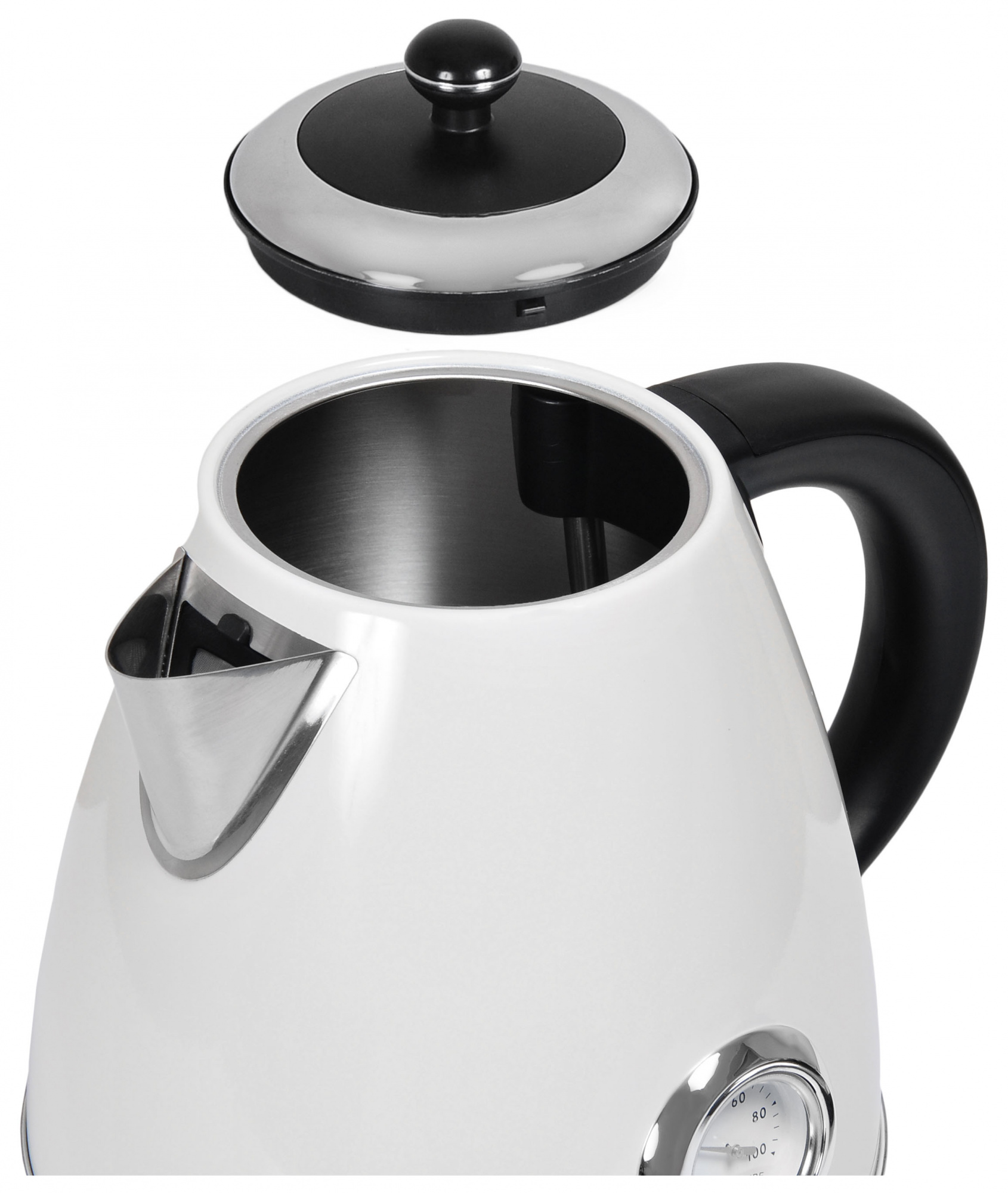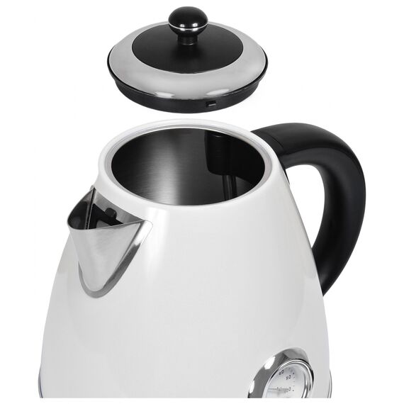 Технологичный и современный чайник в РЕТРО стиле с индикатором температуры. STRIX – надежный и долговечный контроллер Английской компании с дополнительной гарантией 10 лет, легкосъемный моющийся нейлоновый фильтр, съемная крышка, функция отключение при снятии с базы, корпус из нержавеющая стали HQS