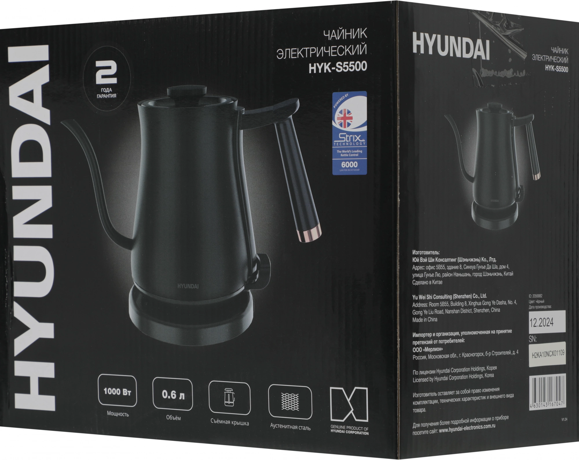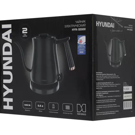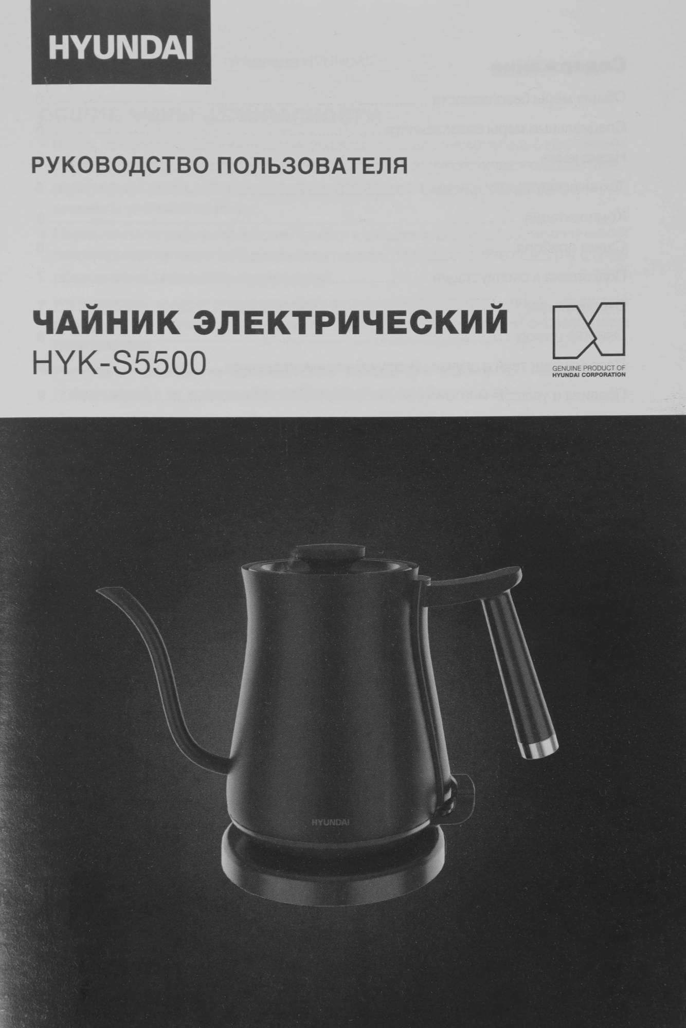 Чайник электрический Hyundai HYK-S5500 0.7л. 1000Вт черный/черный корпус: металл