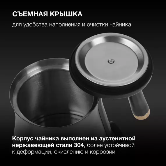 | Особенности | Корпус выполнен из аустенитной стали, более устойчива к окислению, деформации и коррозии.Узкий длинный носик для удобства заваривания напитков. |