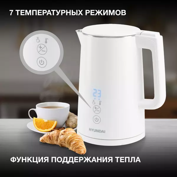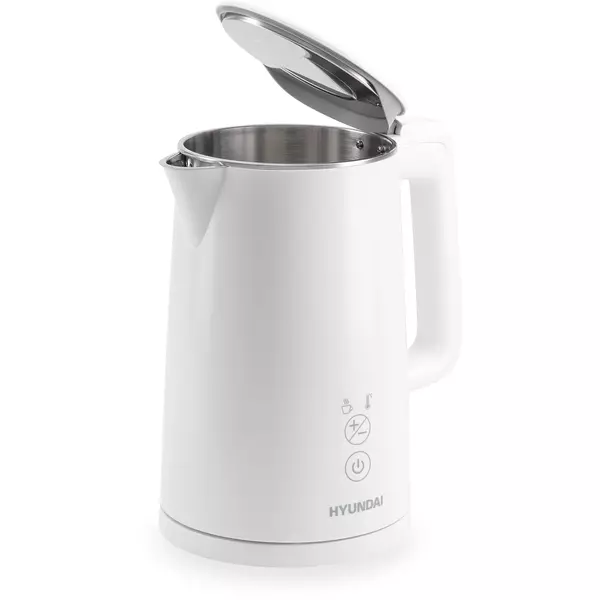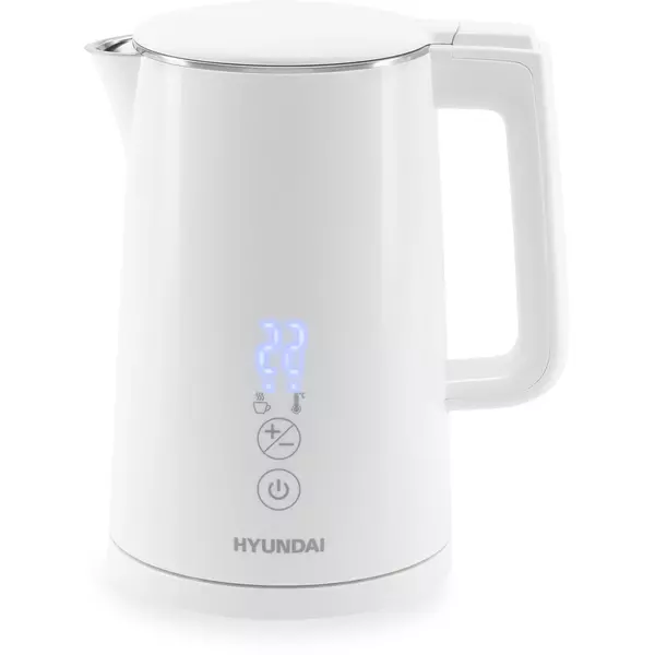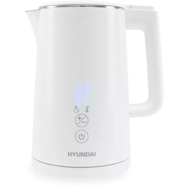 Hyundai HYK-S5508 – это современный надежный чайник, выполненный в футуристическом дизайне и минималистичном белом оформлении.Объём жидкости, вмещаемый данной моделью, составляет 1,5 л. Поскольку чайник обладает мощностью 2200 Вт, нагрев такого объёма в нём займёт всего пару минут. При этом прибор работает в восьми температурных режимах. Чтобы управлять ими, на стенке Hyundai HYK-S5508 предусмотрены сенсорные кнопки, там же расположена и клавиша включения. Температура крайне важна для правильного заваривания различных сортов чая.