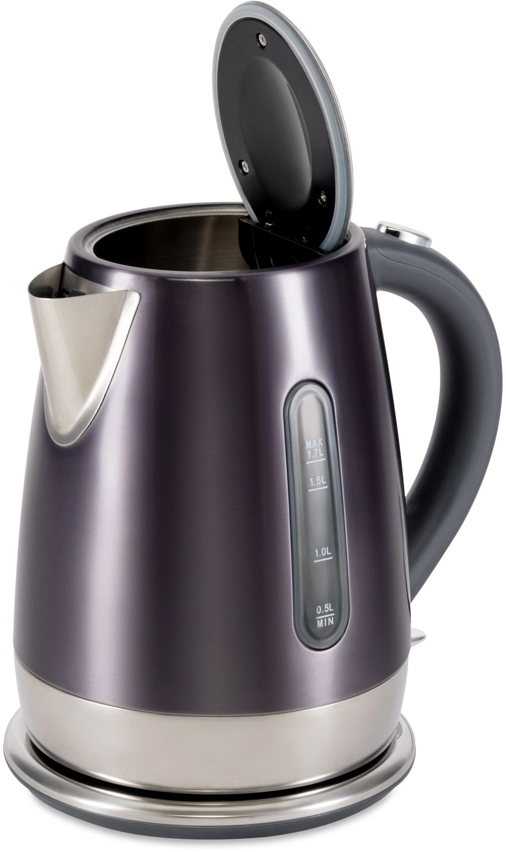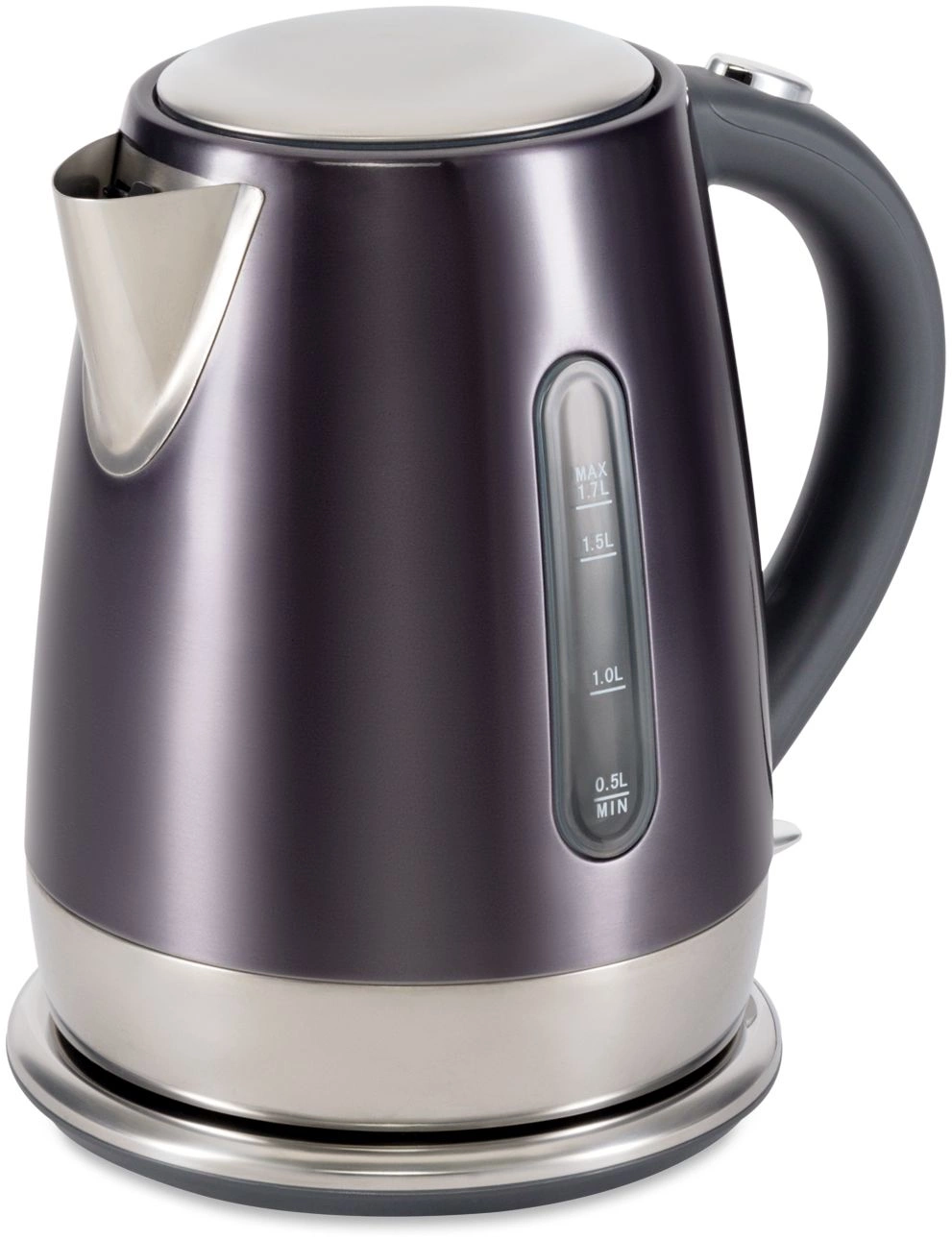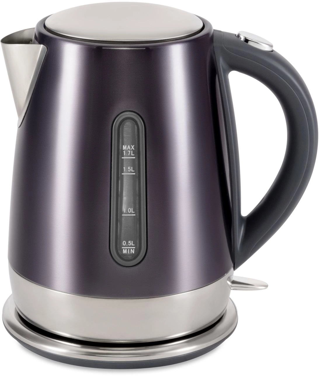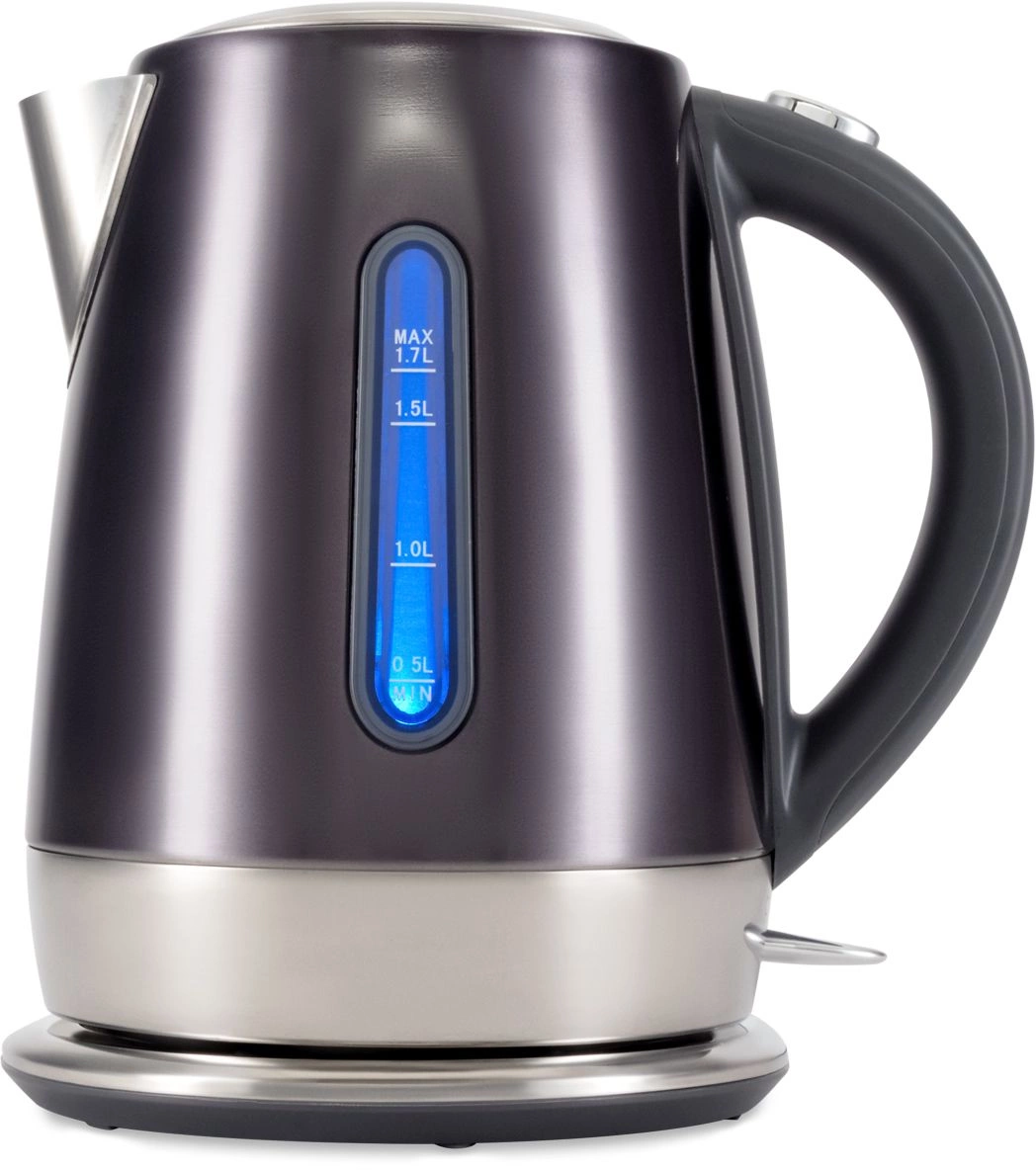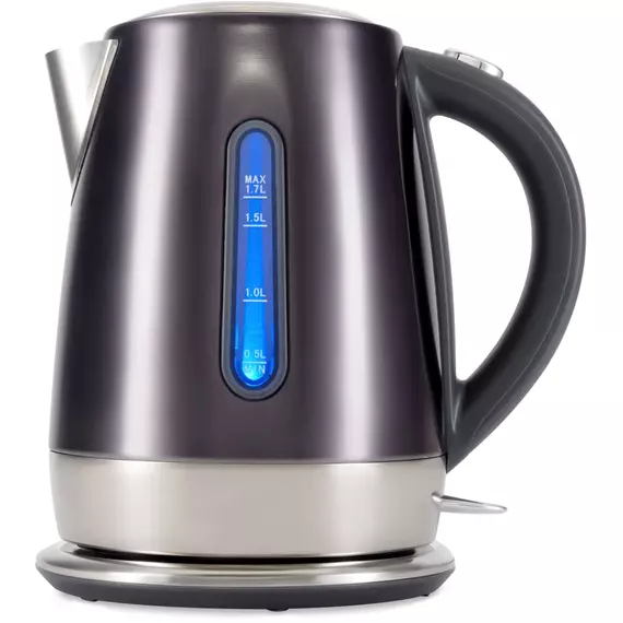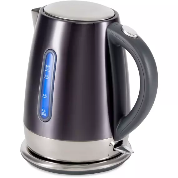 Стильный металлически чайник в трендовом графитовом цвете. Качественная сборка, эргономичная форма, хромированные элементы, делают из чайники стильный и полезный аксессуар на кухне.